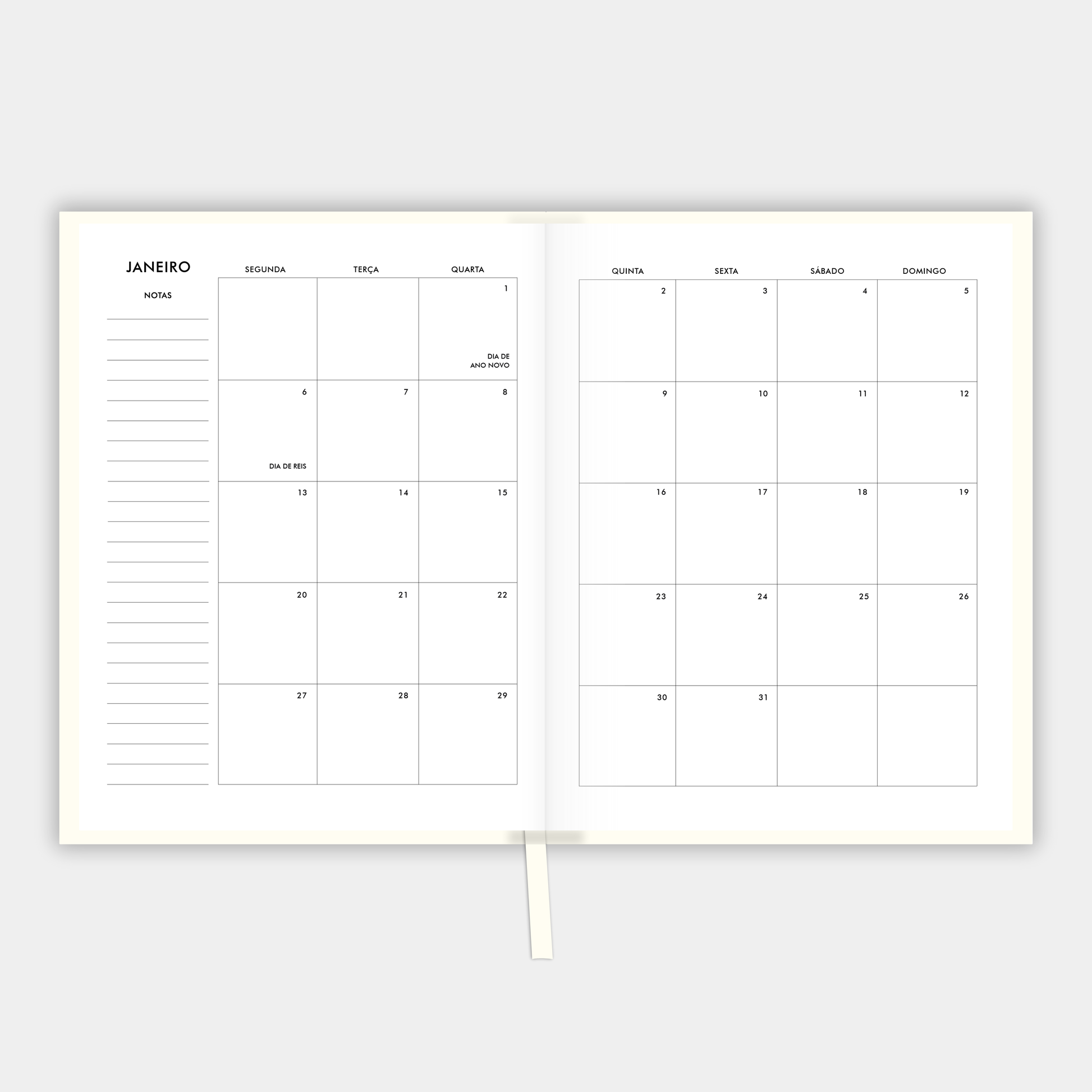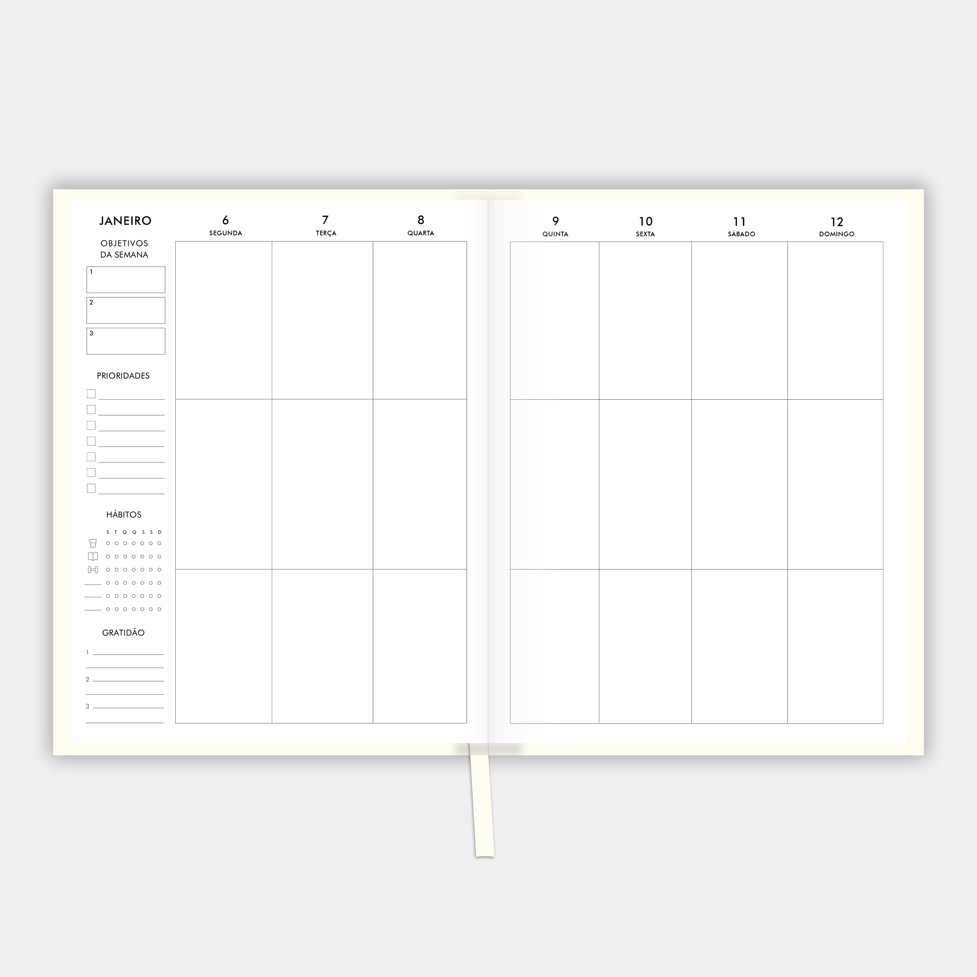 Com vista semanal e acabamentos premium como capa dura, encadernação cosida à mão para garantir uma abertura das páginas a 180º e fita para marcar a página. Cada um destes detalhes foi pensado para tornar cada planner ainda mais bonito, especial e durável.