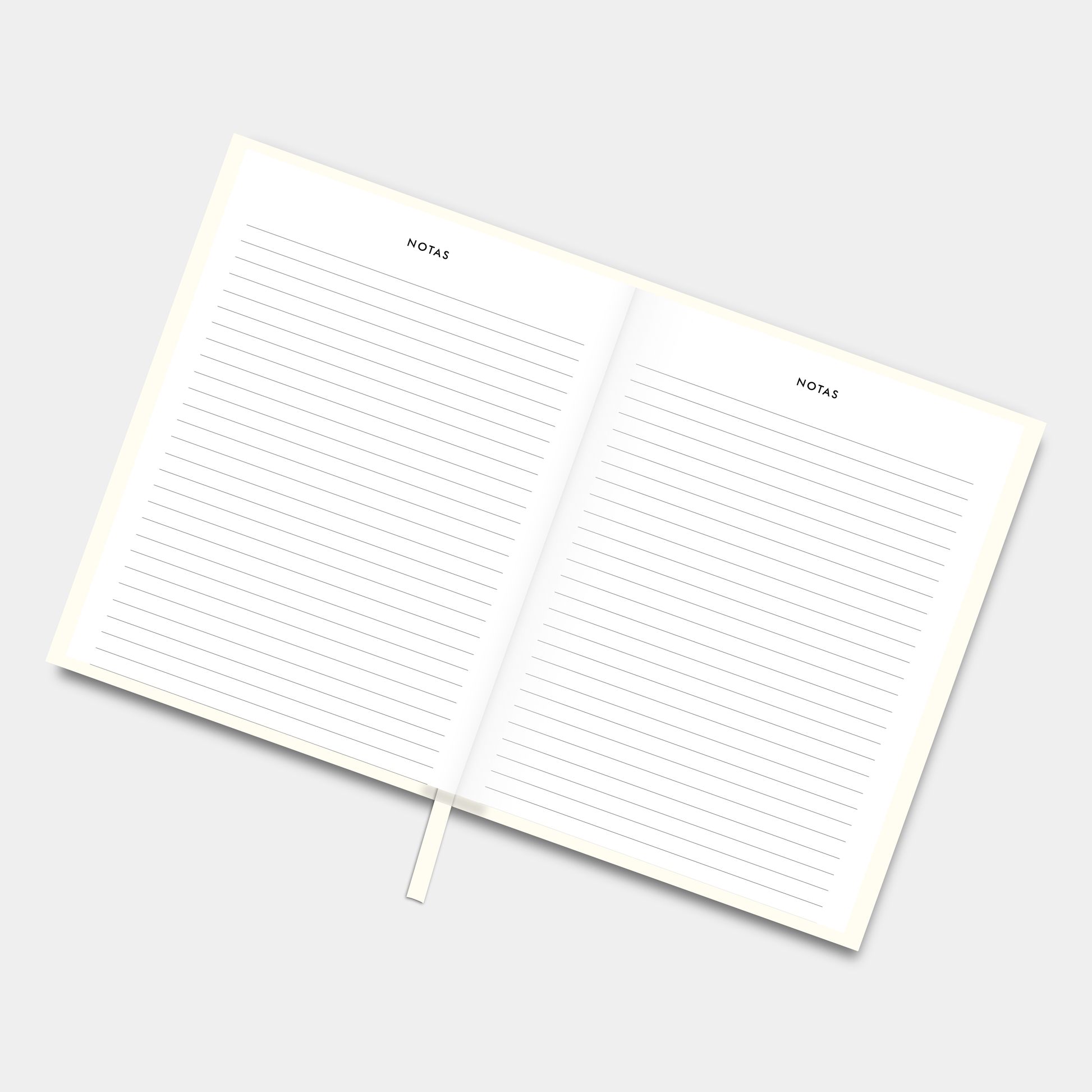 • Acabamentos premium como capa dura, encadernação cosida à mão para garantir uma abertura das páginas a 180º e fita para marcar a página