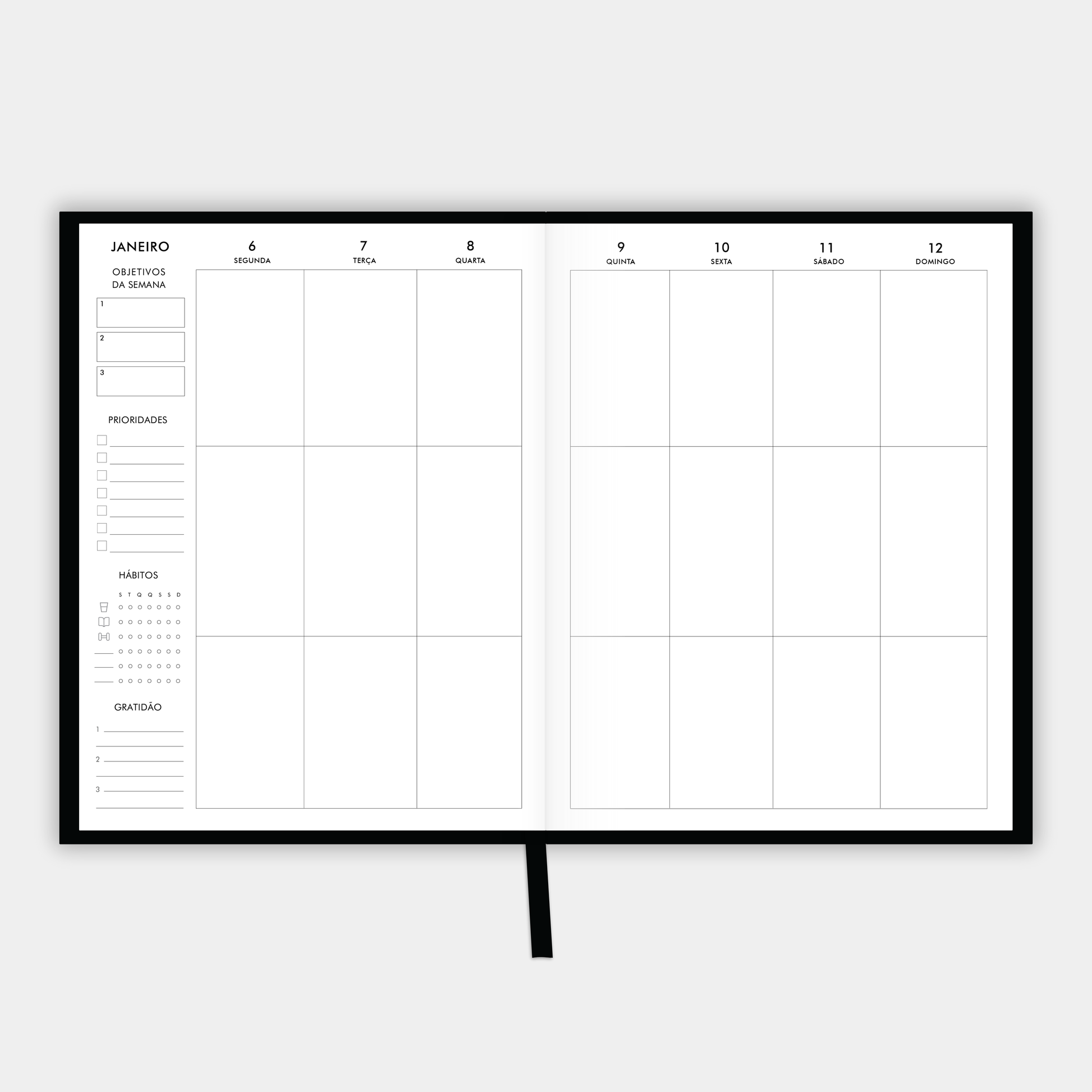 Com vista semanal e acabamentos premium, como capa dura, encadernação cosida à mão, para garantir uma abertura das páginas a 180º e fita para marcar a página. Cada um destes detalhes foi pensado para tornar cada planner ainda mais bonito, especial e durável.