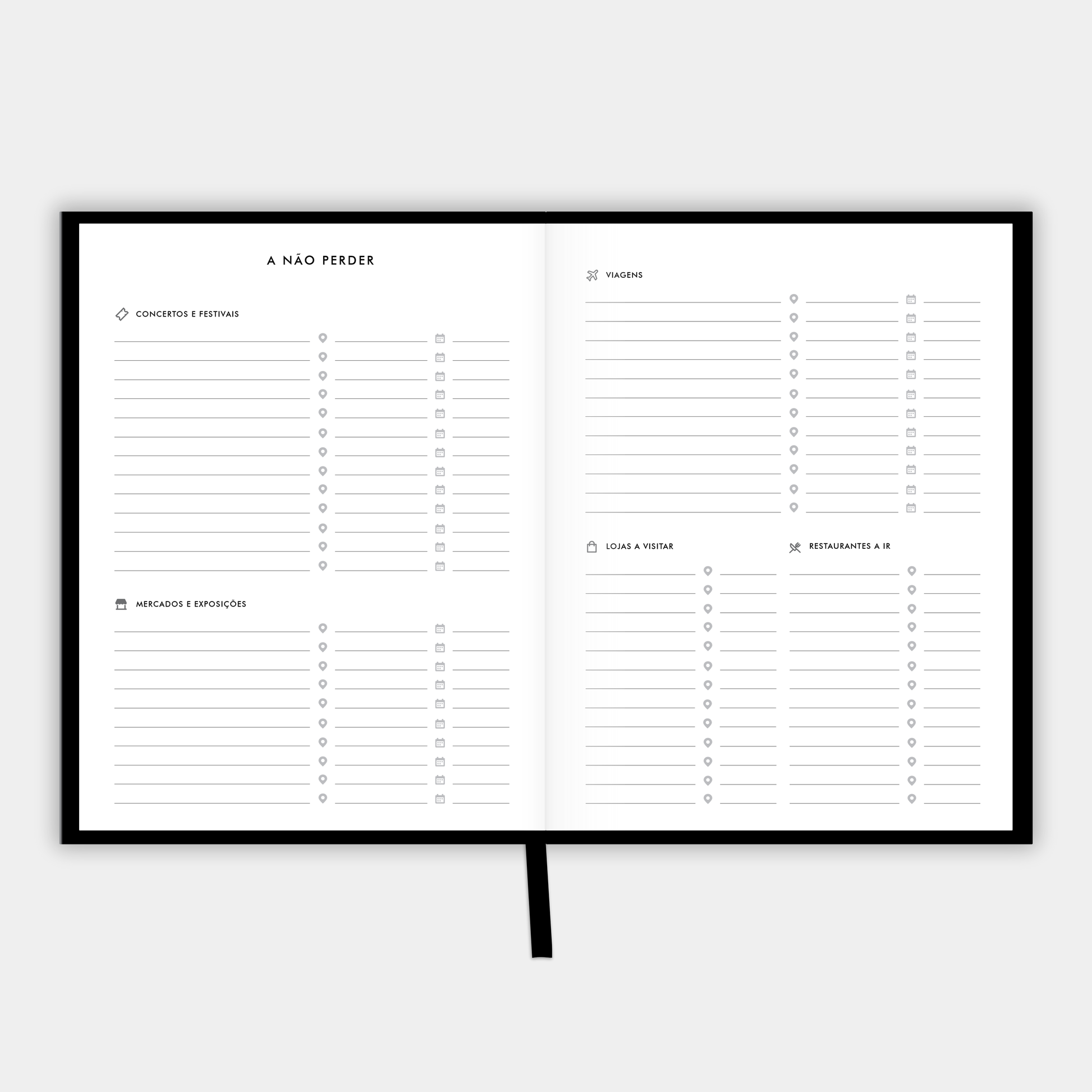 - A não perder: Concertos, Mercados, Viagens, Lojas e Restaurantes;