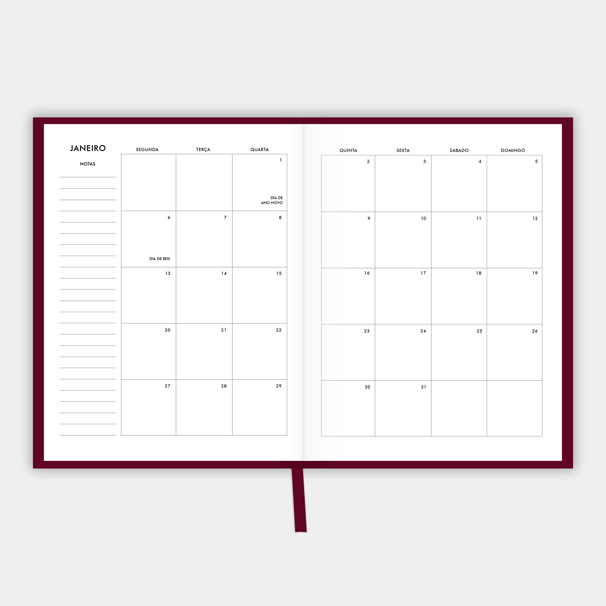 - Planeamento mensal (layout em 2 páginas);