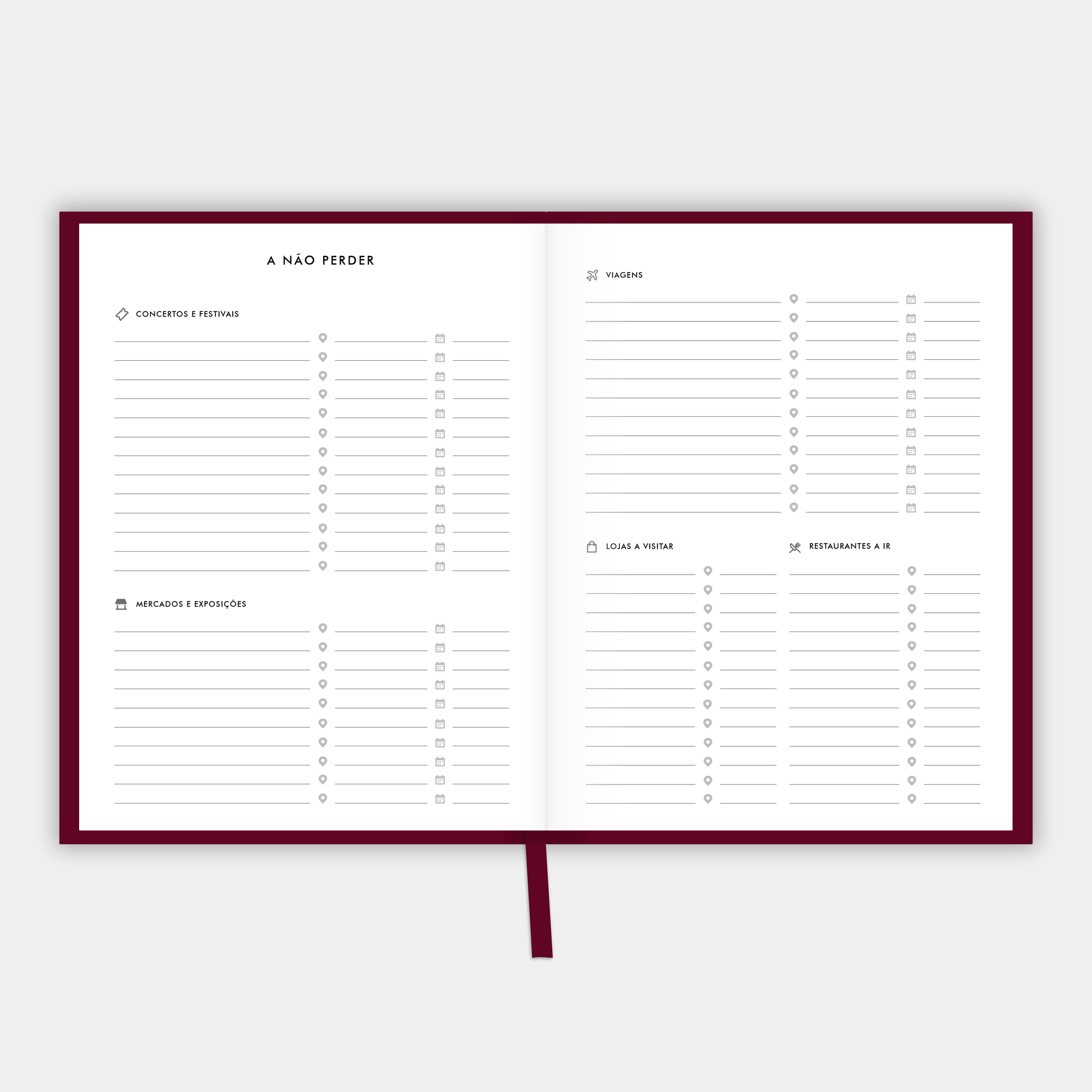 - A não perder: Concertos, Mercados, Viagens, Lojas e Restaurantes;