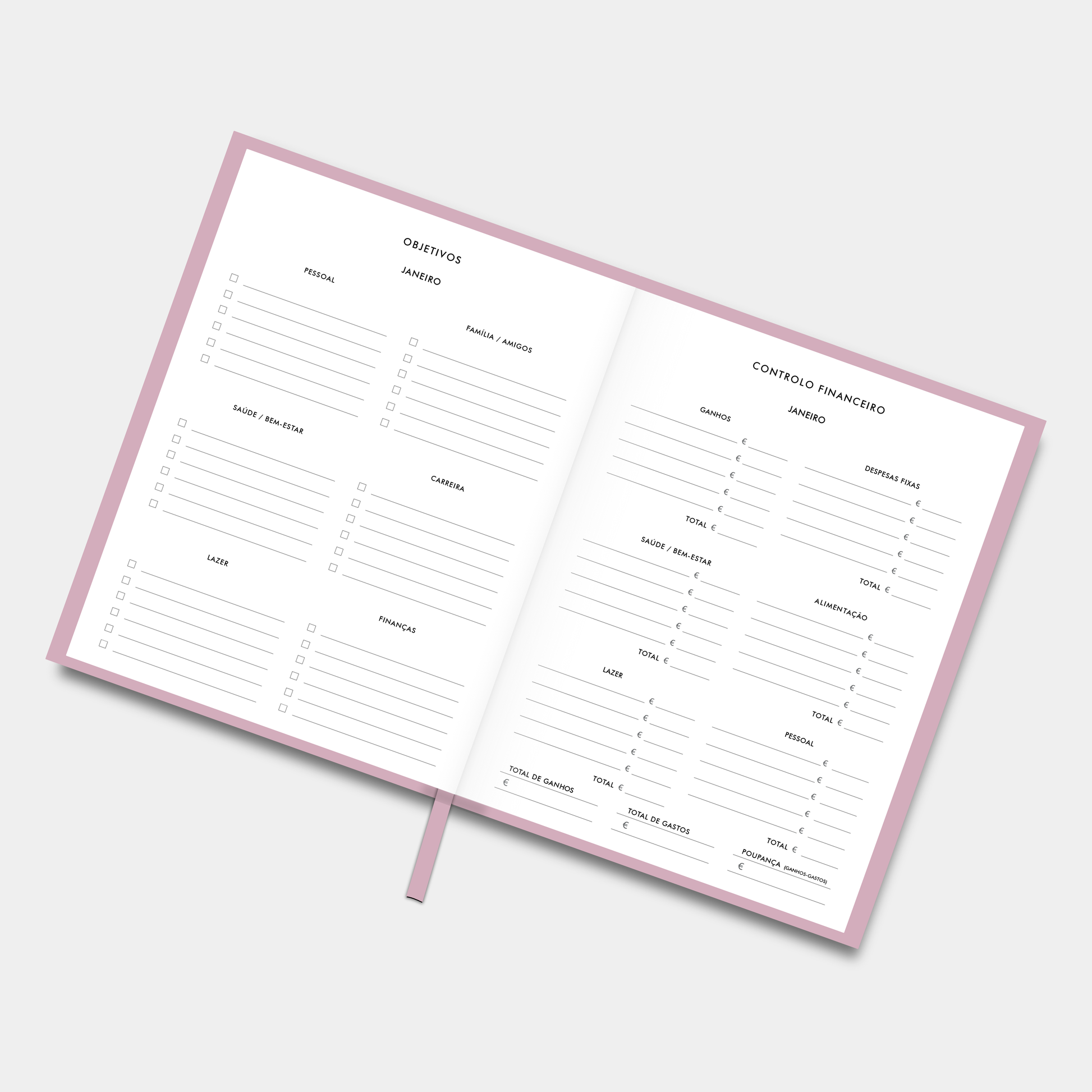 - Planeamento mensal (layout em 2 páginas);